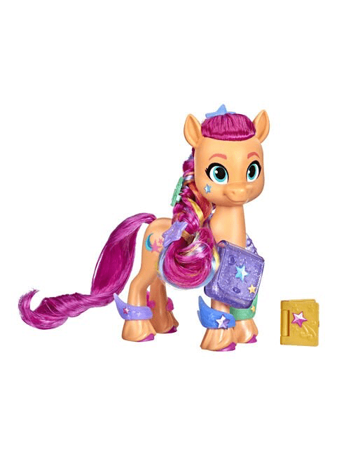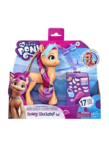 “My Little Pony Sunny canta y patina está inspirada en la nueva película y es una figura interactiva con ruedas que trae un micrófono inalámbrico que se puede utilizar para cantar o como control remoto para mover a Sunny hacia adelante o girarla”,